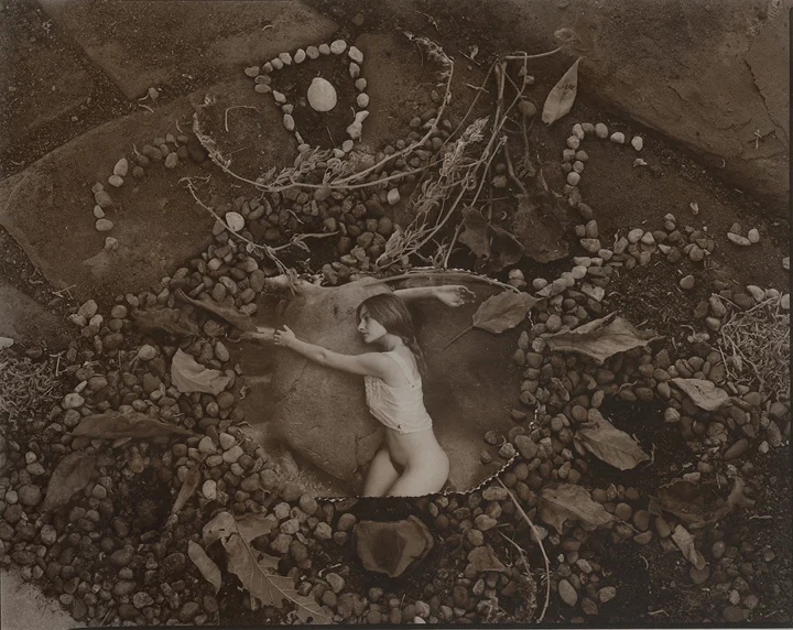 Female Figure with Leaves and Stones, 1973. From Illusory Arrangements © Diana Schoenfeld