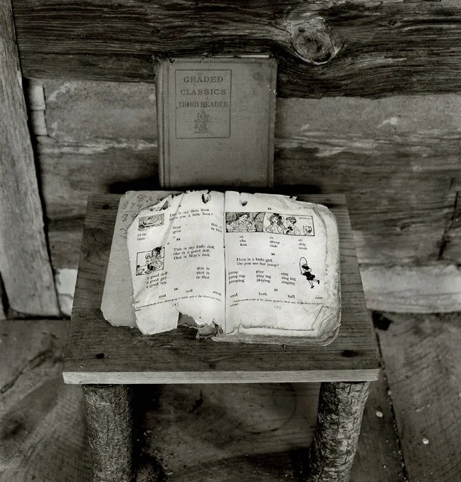Child’s Reader on Bench, York Log Schoolhouse. From Schoolhouse Odyssey 2004 © Diana Schoenfeld