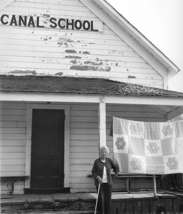 Former student Esther Giuntoli with her 4th Grade Quilting Project at Canal School, established 1889, Humboldt County, California. From Schoolhouse Odyssey 1999 © Diana Schoenfeld