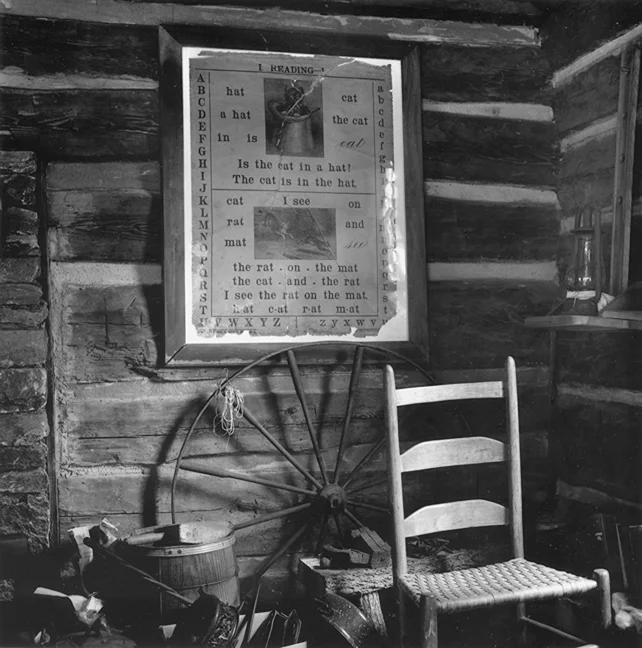 Reading Scroll Corner, 1842 York Log Schoolhouse. From Schoolhouse Odyssey 1997 © Diana Schoenfeld