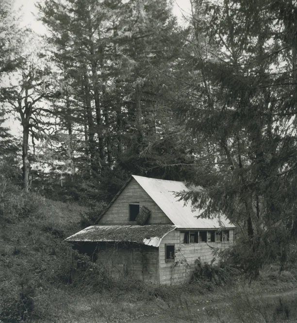 Abandoned Schoolhouse with Belfrey in Trees. Possibly old Laurelwood School, Washington County, Oregon. From Schoolhouse Odyssey 2005 © Diana Schoenfeld